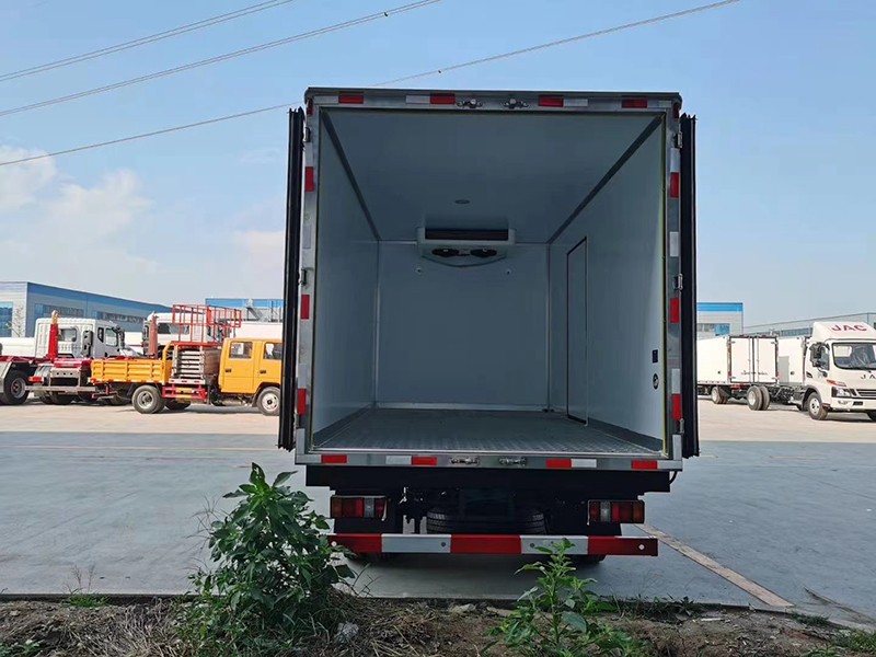 上装配置:箱体为内外玻璃钢板,中间保温材料为8cm聚氨酯保温板,铝花纹底板,箱体铝合金型材包边,包角,配双开后门,单开侧门,不锈钢门框、锁件、铰链,其余标配。